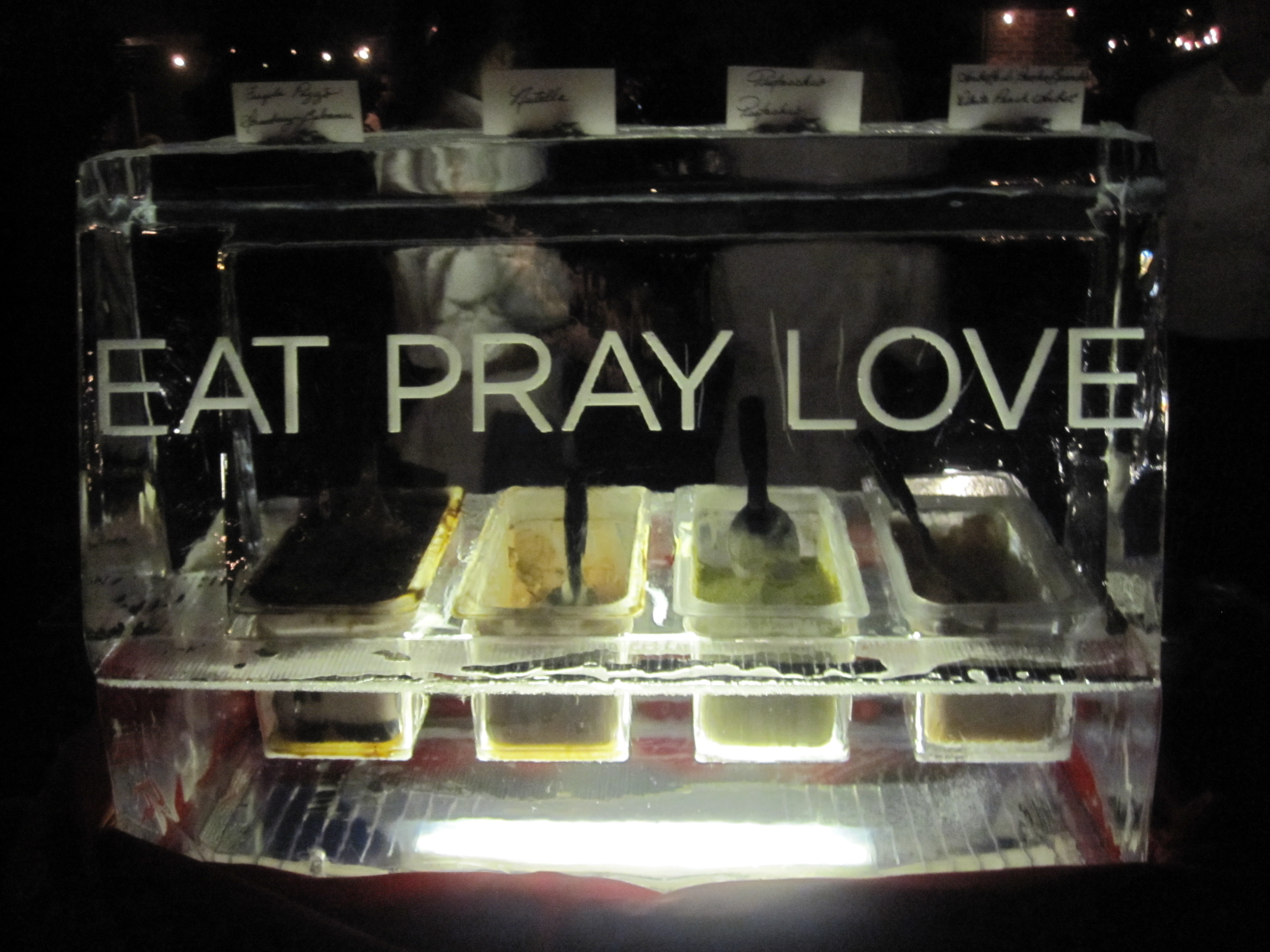 Since we couldn’t be in Italy to enjoy the “Eat” part of Columbia Pictures Eat Pray Love, Food Network’s Chef Michael Chiarello prepared a multicourse meal for us and paired each with a wine. Complete with an ice sculpture filled with three flavors of Gelato.