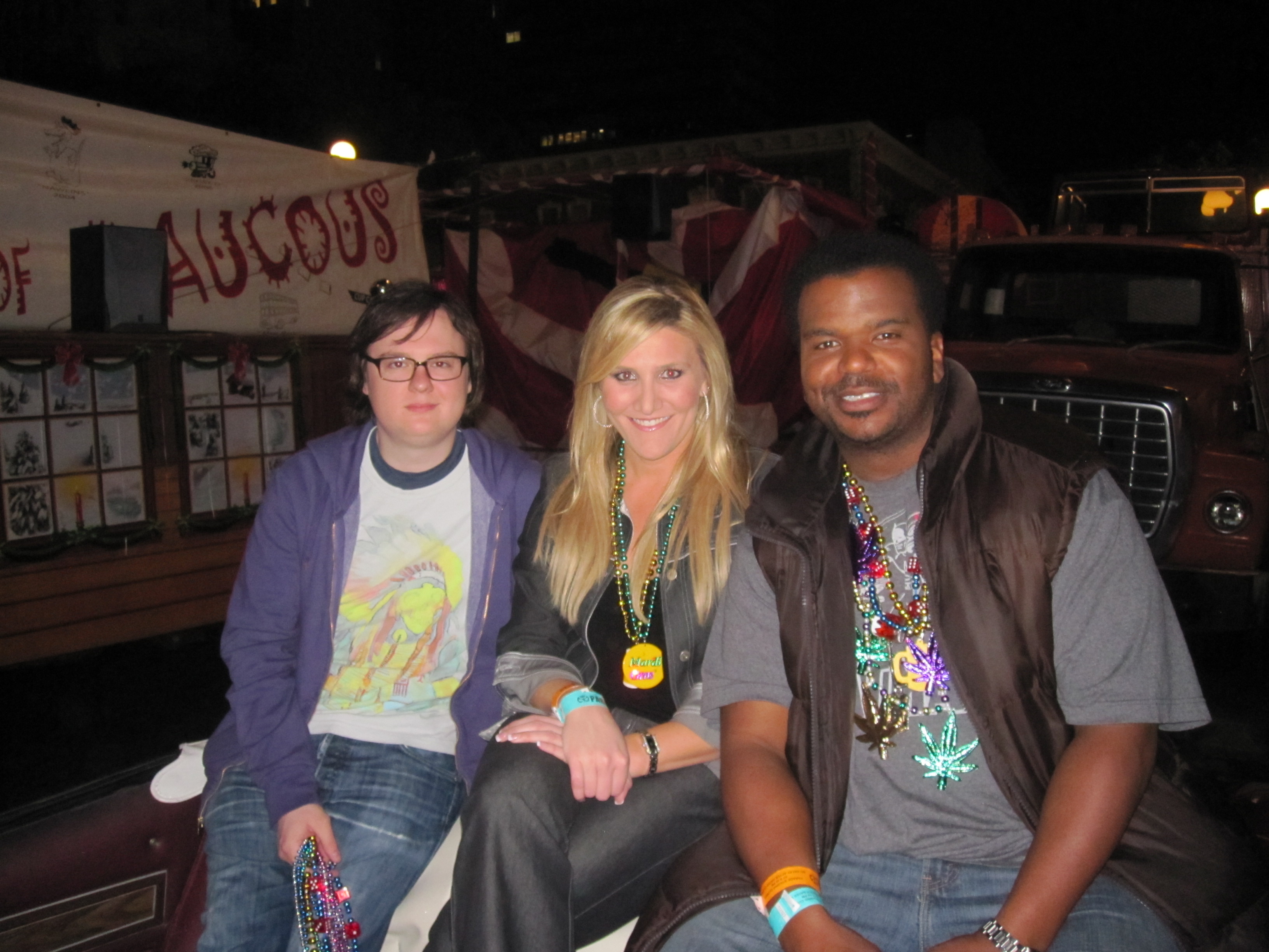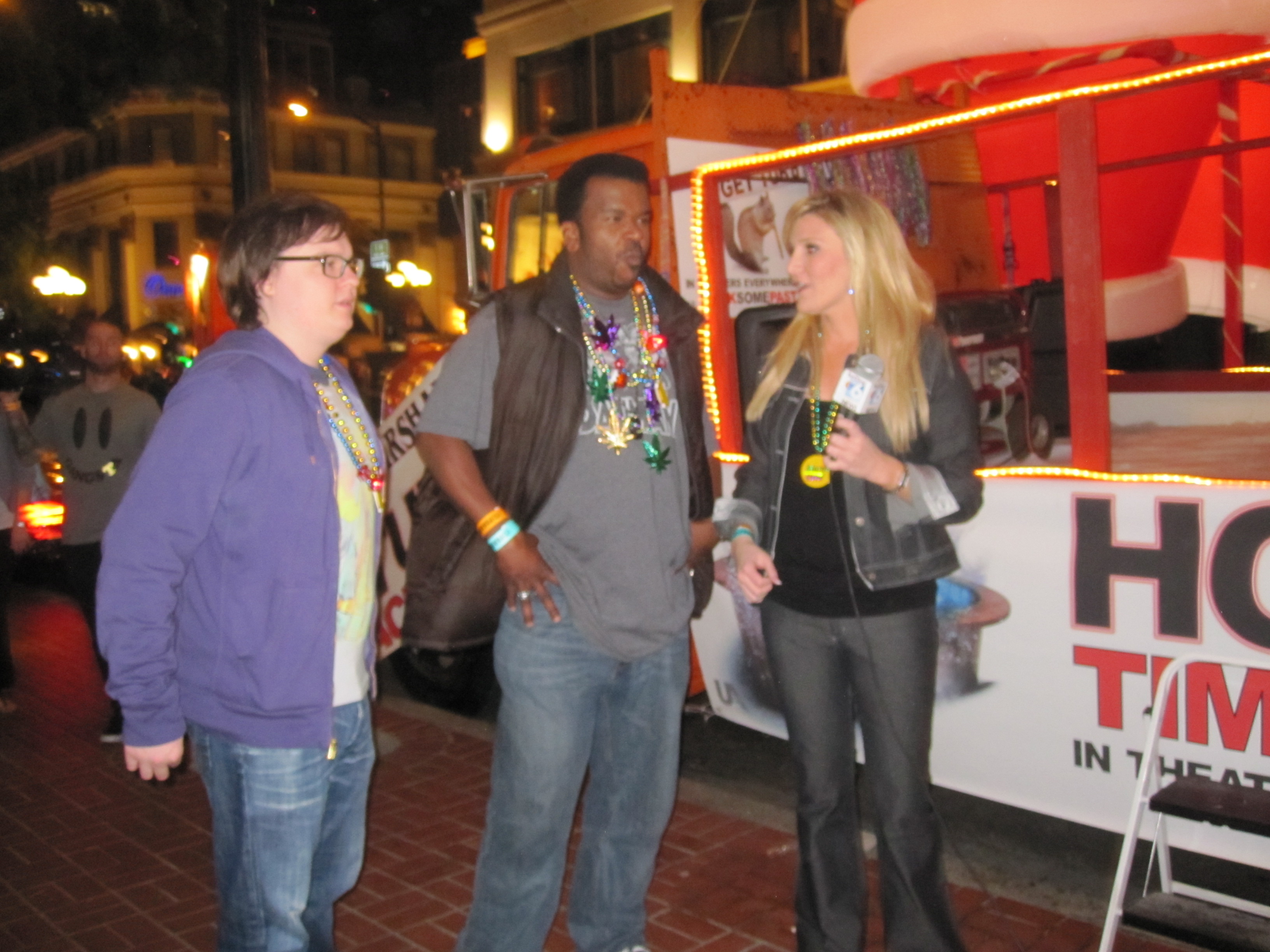 The Office’s Craig Robinson and Greek’s Clark Duke come to San Diego to Grand Marshall the Mardi Gras Parade. I moderated their special screening with Q&A and they asked me to join them in the lead car and throw out beads to the streets lined with celebrating fans!