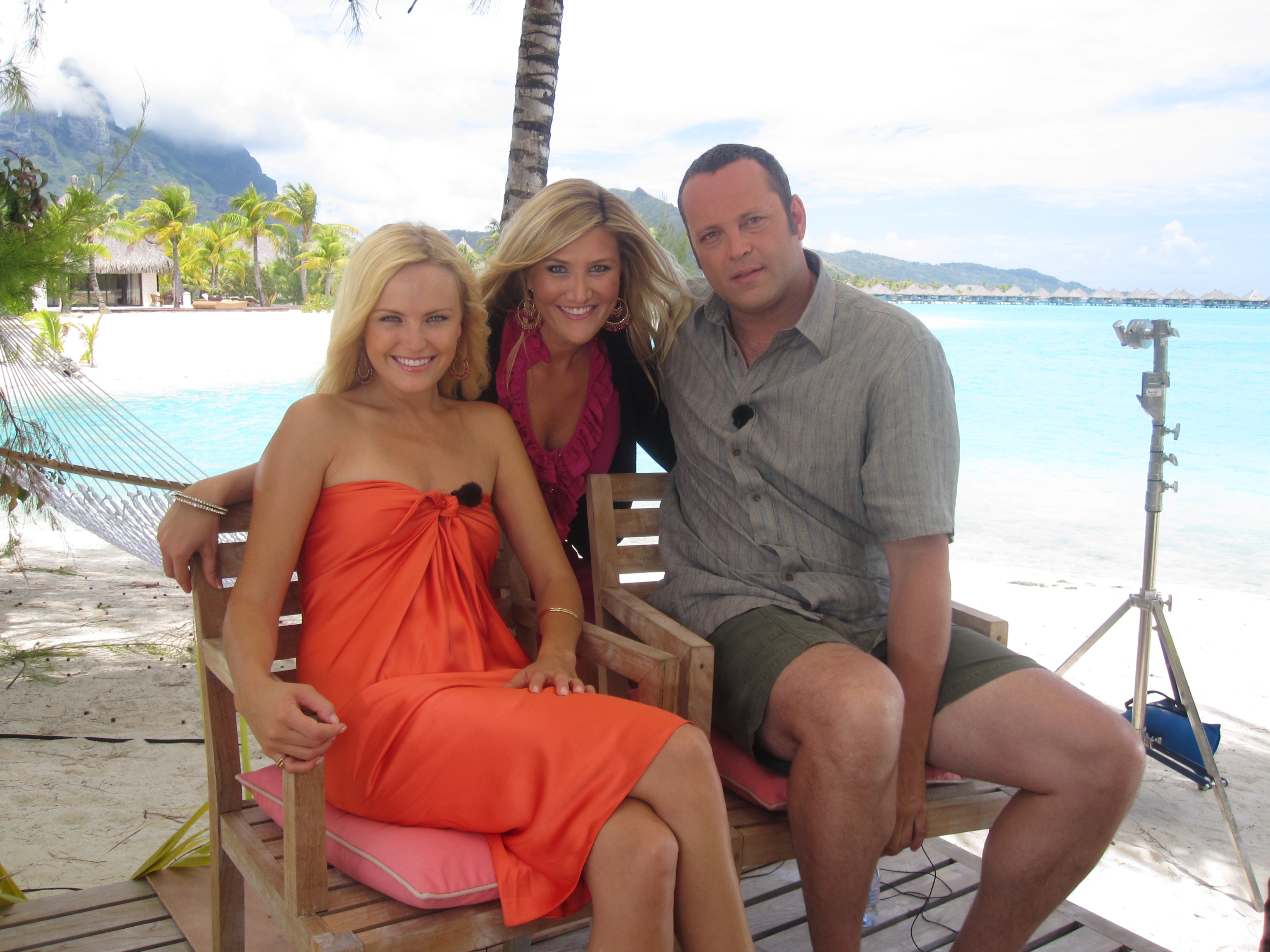 Swimming with sting rays, snorkeling with sharks, and jet skiing the island… all with the cast of Universal Pictures Couples Retreat! I sat down on the beautiful beaches of Bora Bora to do interviews with Vince Vaughn, Malin Akerman, Jason Bateman, Kristen Bell, Jon Favreau, Kristin Davis, Fazion Love, and Kali Hawk.
